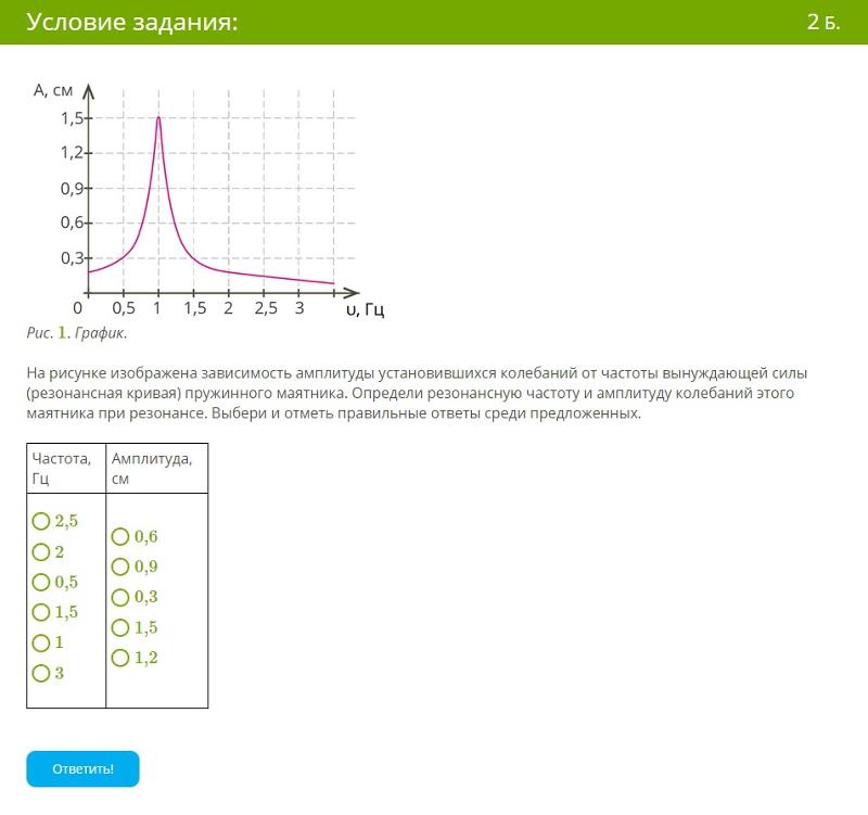 Главная » wiki » Физика тест Физика тест wiki На чтение 1 мин Просмотров 43 Опубликовано 23.02.2023 Вопрос: Ответ: А = 1.5 см ν = 1 Гц